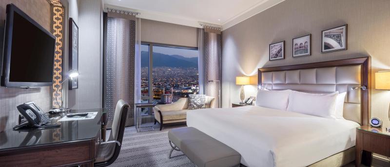 Bursa'nın Osmangazi mevkiinde konumlanan Hilton Bursa Convention Center And Spa, kusursuz hizmet anlayışı ve merkezi konumu ile hem iş hem de turistik seyahatlerde avantaj sağlıyor. Şehrin ve iş hayatının verdiği yorgunluğu üzerinden atmak isteyenler için; kapalı havuz ve sauna gibi rahatlatıcı seçenekler mevcut. Spor yapmayı seven veya formunu korumak isteyenler için tam donanımlı fitness center tüm gün hizmet veriyor. Hilton Bursa Convention Center And Spa, Türk ve dünya mutfağının seçkin lezzetlerinin yer aldığı restoranı ile misafirlerine seçkin lezzetler sunuyor.